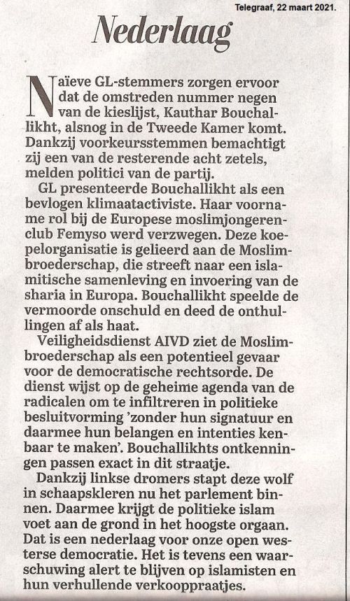Hoofdredactioneel artikel in de Telegraaf.