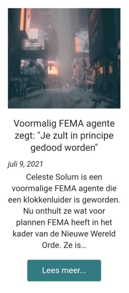 12 juli 2021 door Beheerder Website Fema-agente: “Je zult gedood worden…” Geen categorie Afbeelding Lees HIER verder… Dit delen: Klik om te delen op WhatsApp (Opent in een nieuw venster) WhatsApp Klik om te delen op Facebook (Opent in een nieuw venster) Facebook Klik om te delen met Reddit (Opent in een nieuw venster) Reddit Klik om af te drukken (Opent in een nieuw venster) Print Vind-ik-leuk Aan het laden...